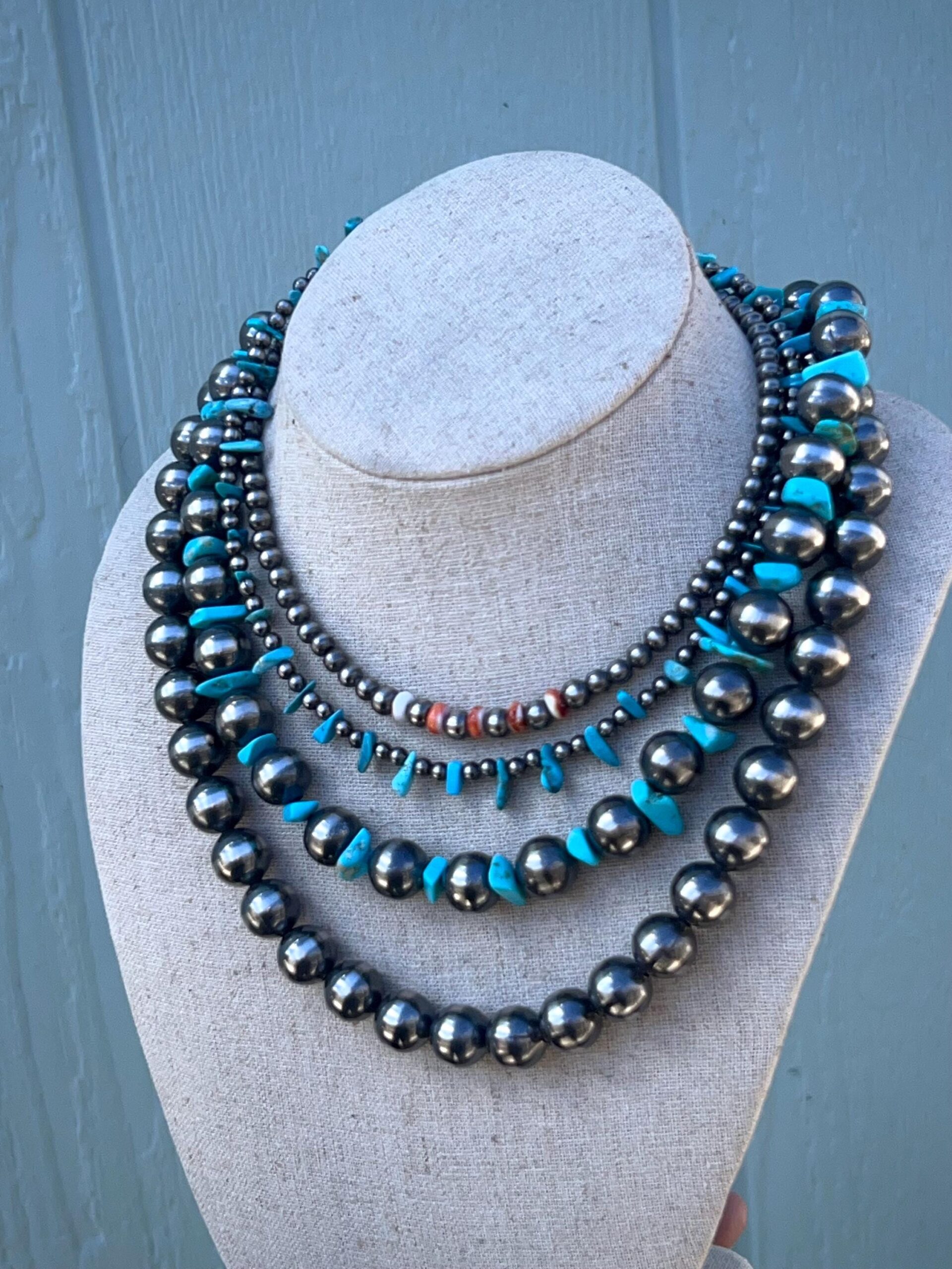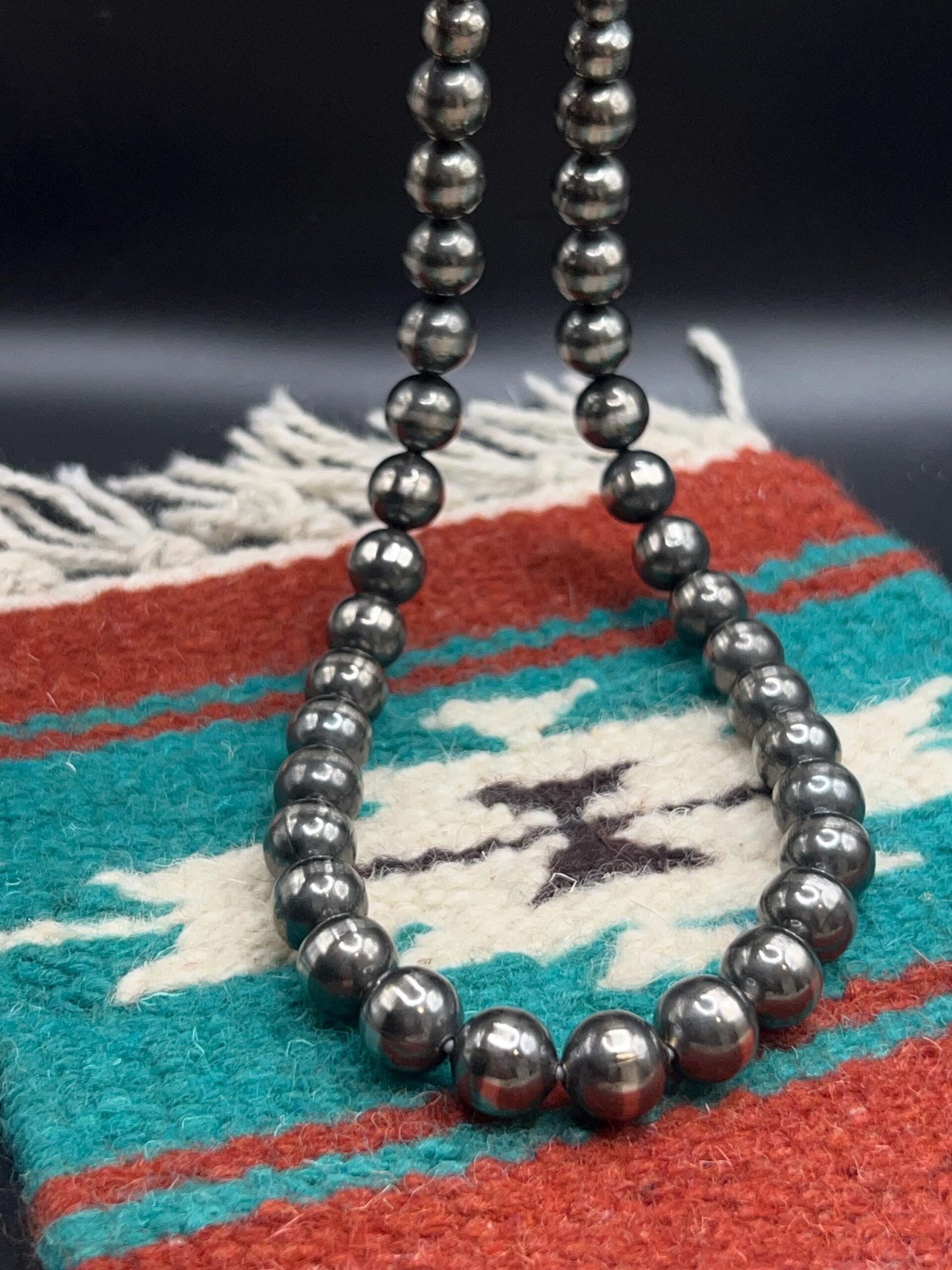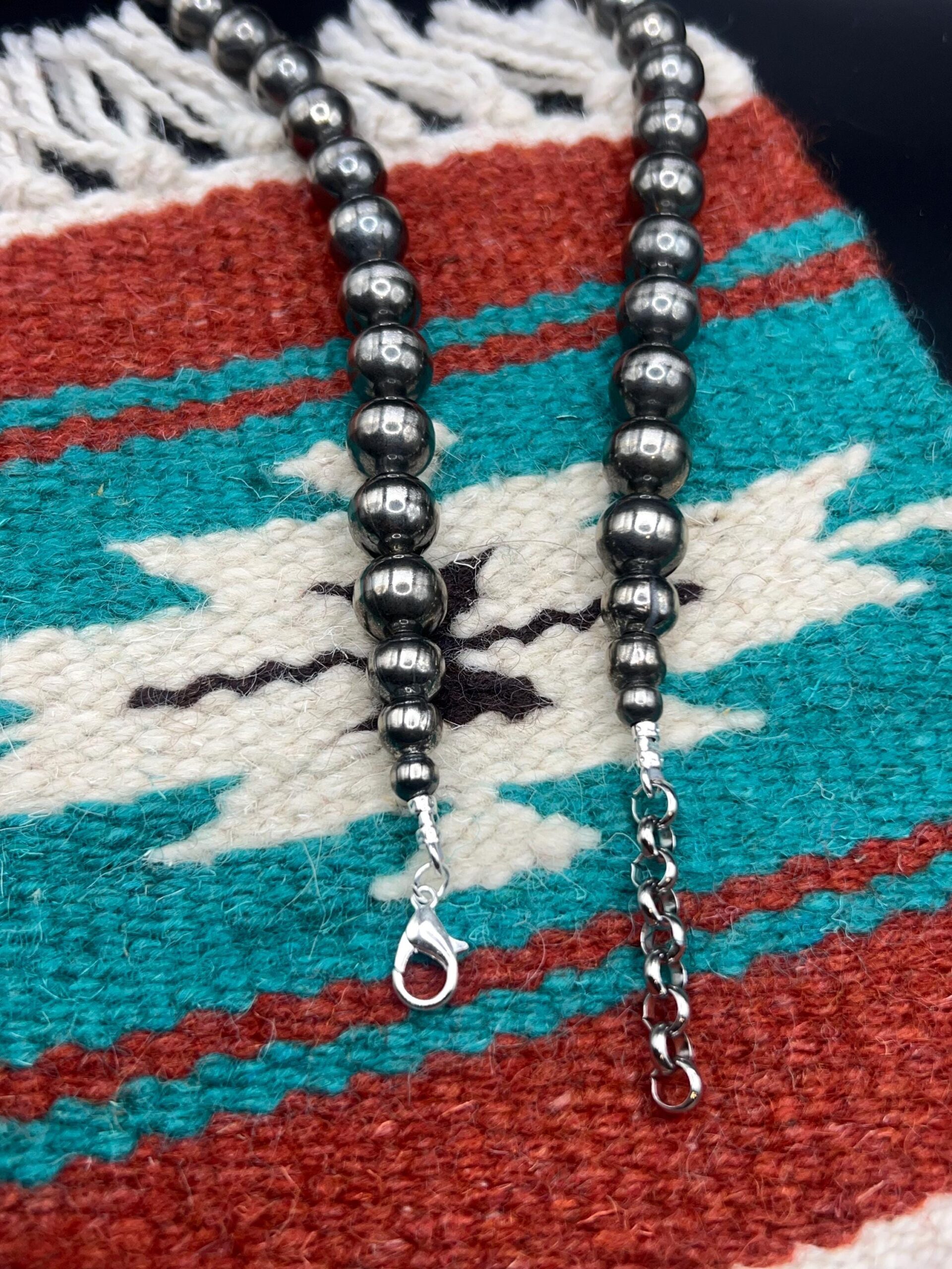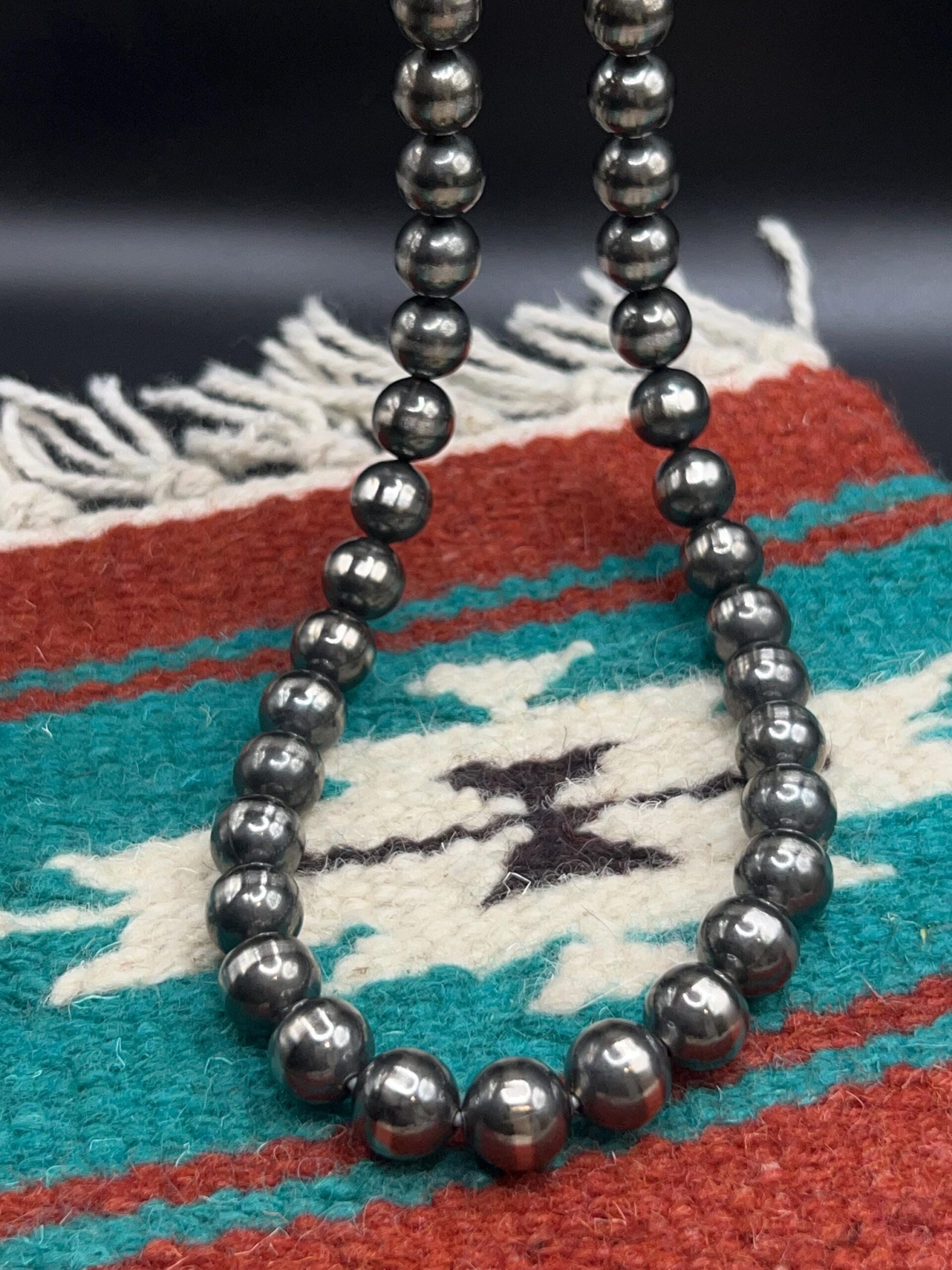 Go big or go home with our 12mm Navajo Pearl Necklace. This size is unapologetically bold, making it the perfect piece when you want your jewelry to do the talking. Choose Between our Authentic Native American Handmade Sterling line or our Silver-Plated beads to suit your style and budget.