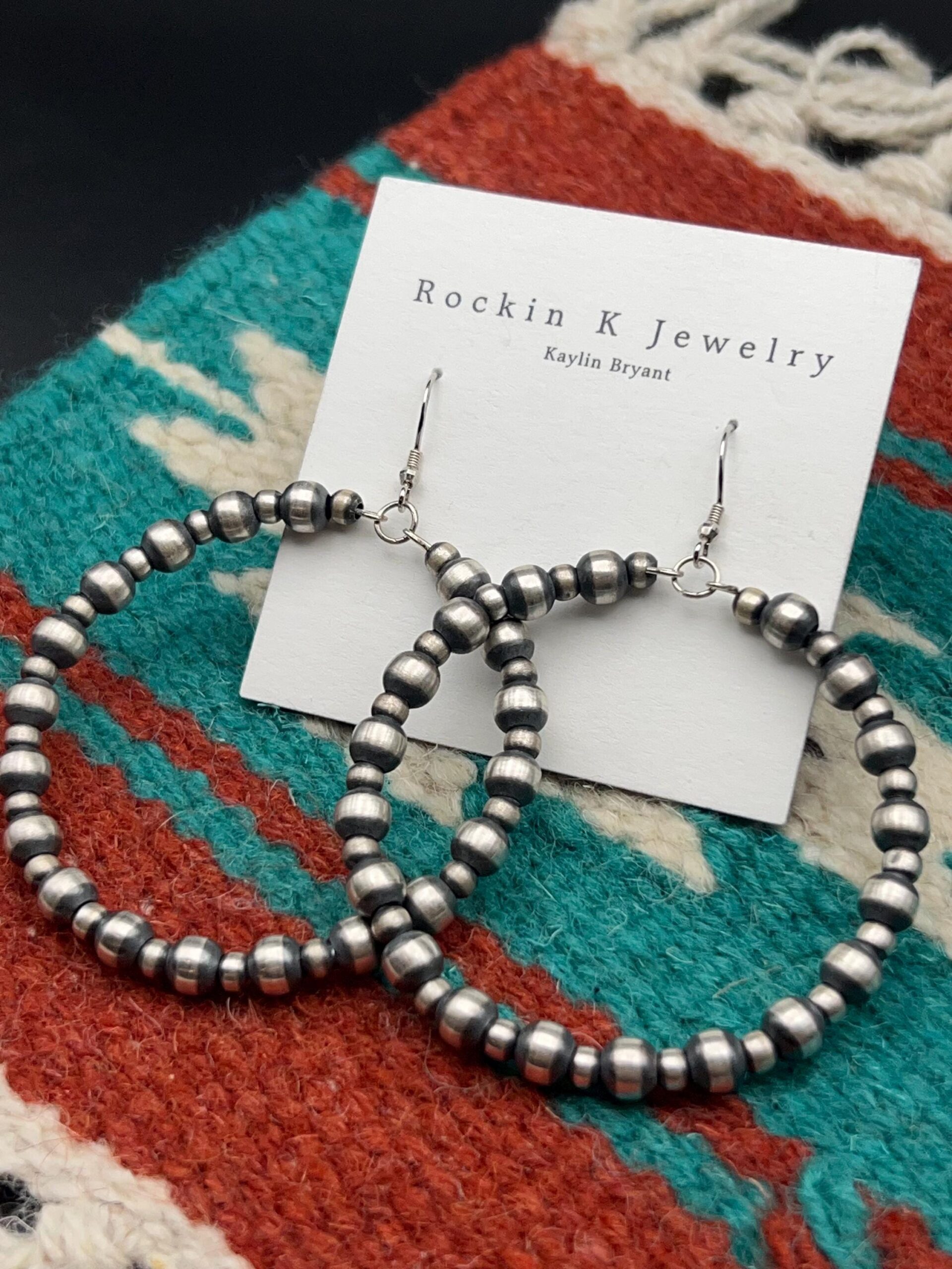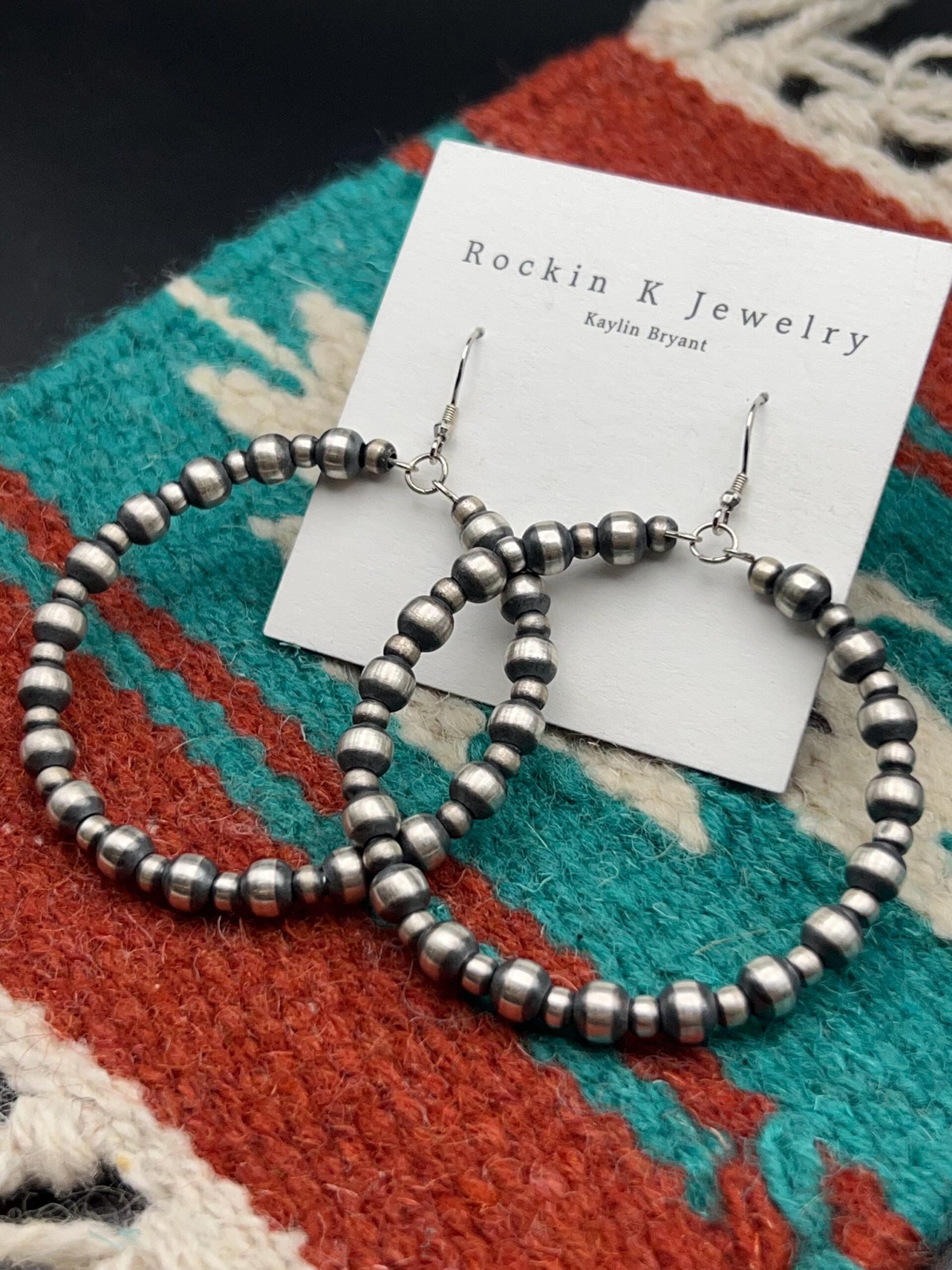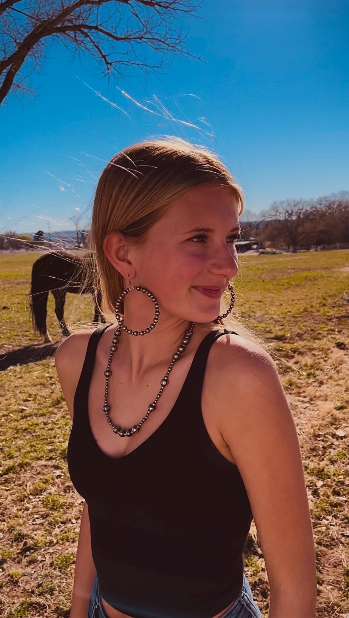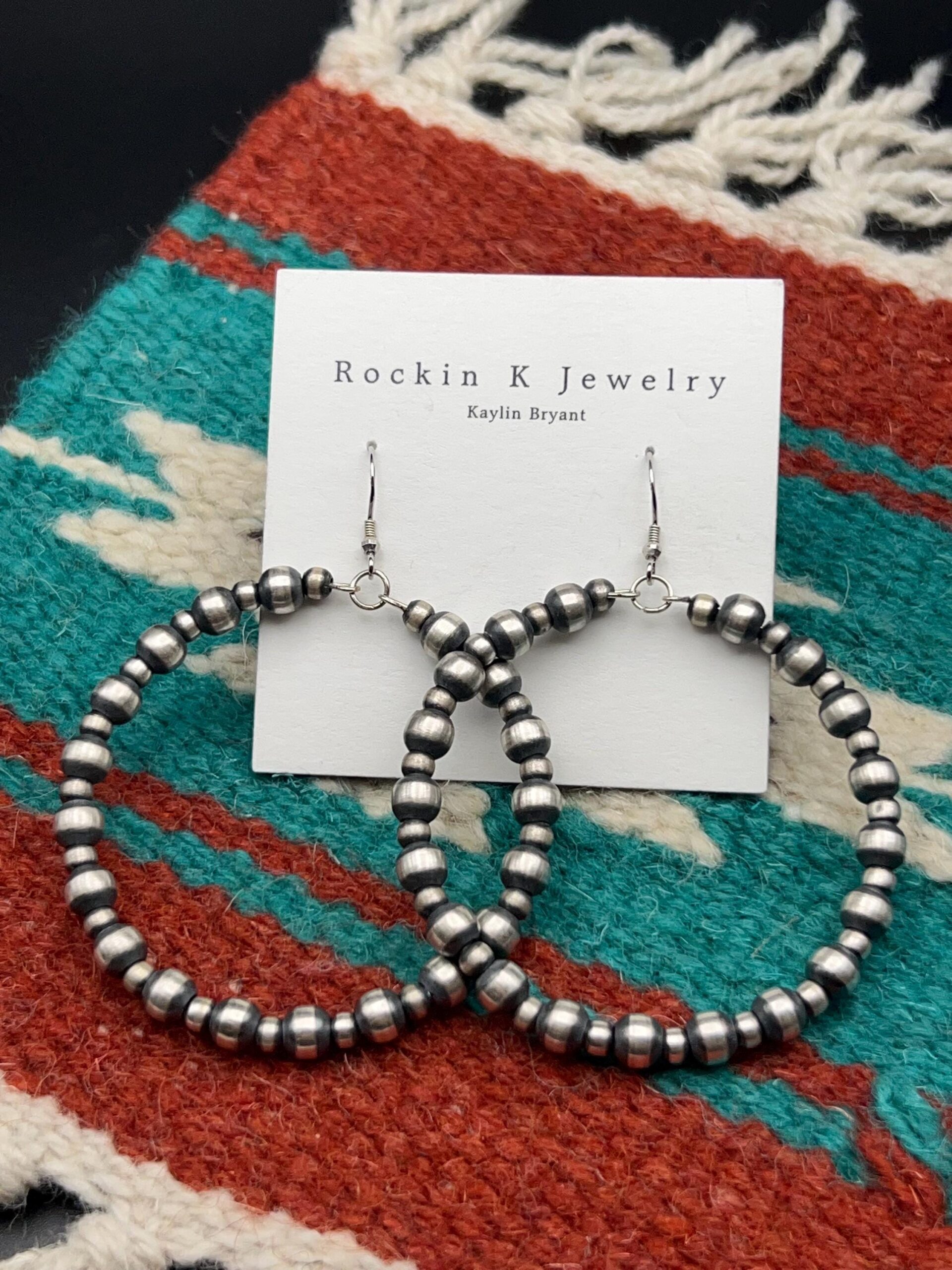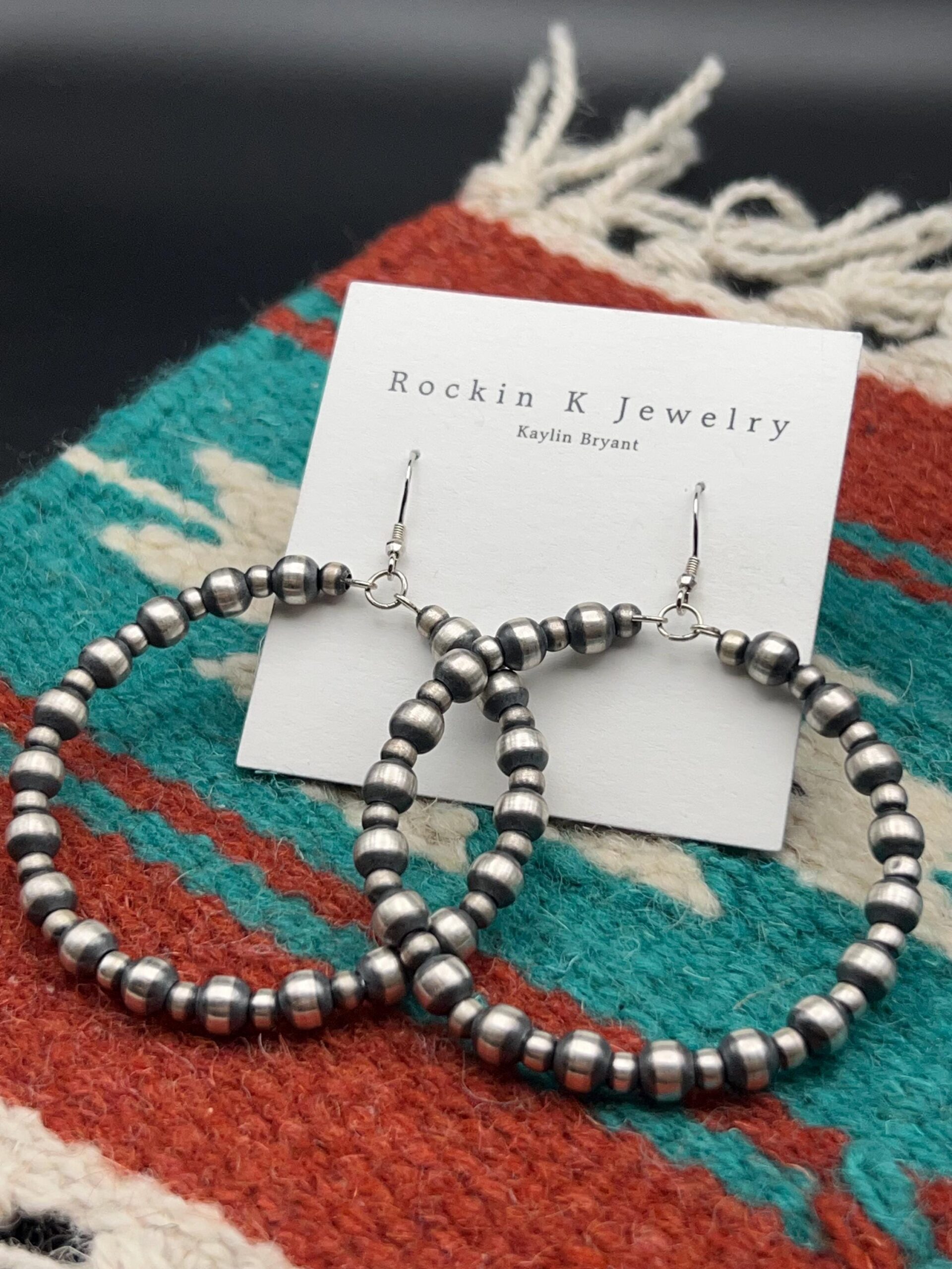 Our 4 & 6mm Navajo Pearl large hoop earrings strike the perfect balance of bold and timeless – an everyday statement piece you’ll reach for over and over again. These will bring the perfect Authentic Southwestern look to any outfit!